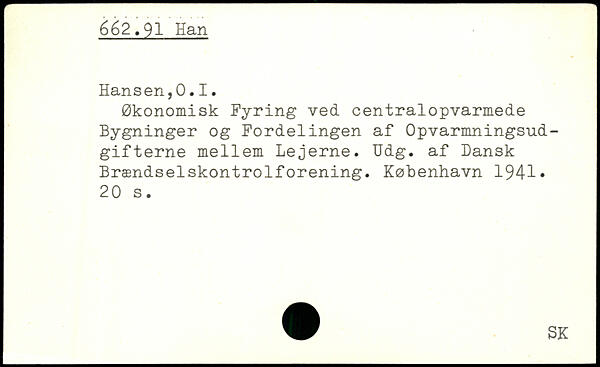 Økonomisk Fyring ved centralopvarmede Bygninger og Fordelingen af Opvarmningsudgifterne mellem Lejerne. Udg. af Dansk Brændselskontrolforening.