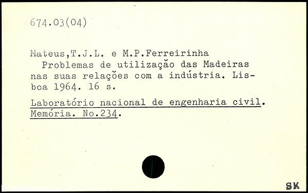 Mateus,T.J.L. e M.P.Ferreirinha Problemas de utilizagäo das Madeiras nas suas relagoes com a industria. Lis-boa 1964