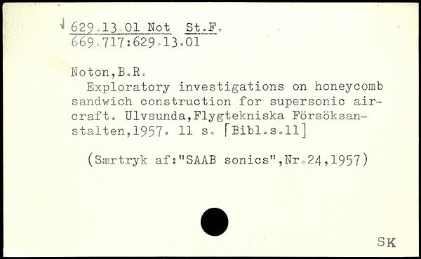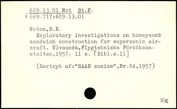 Noton,B.Rc Exploratory investigations on honeycomb sandwich construction for supersonic aircraft.