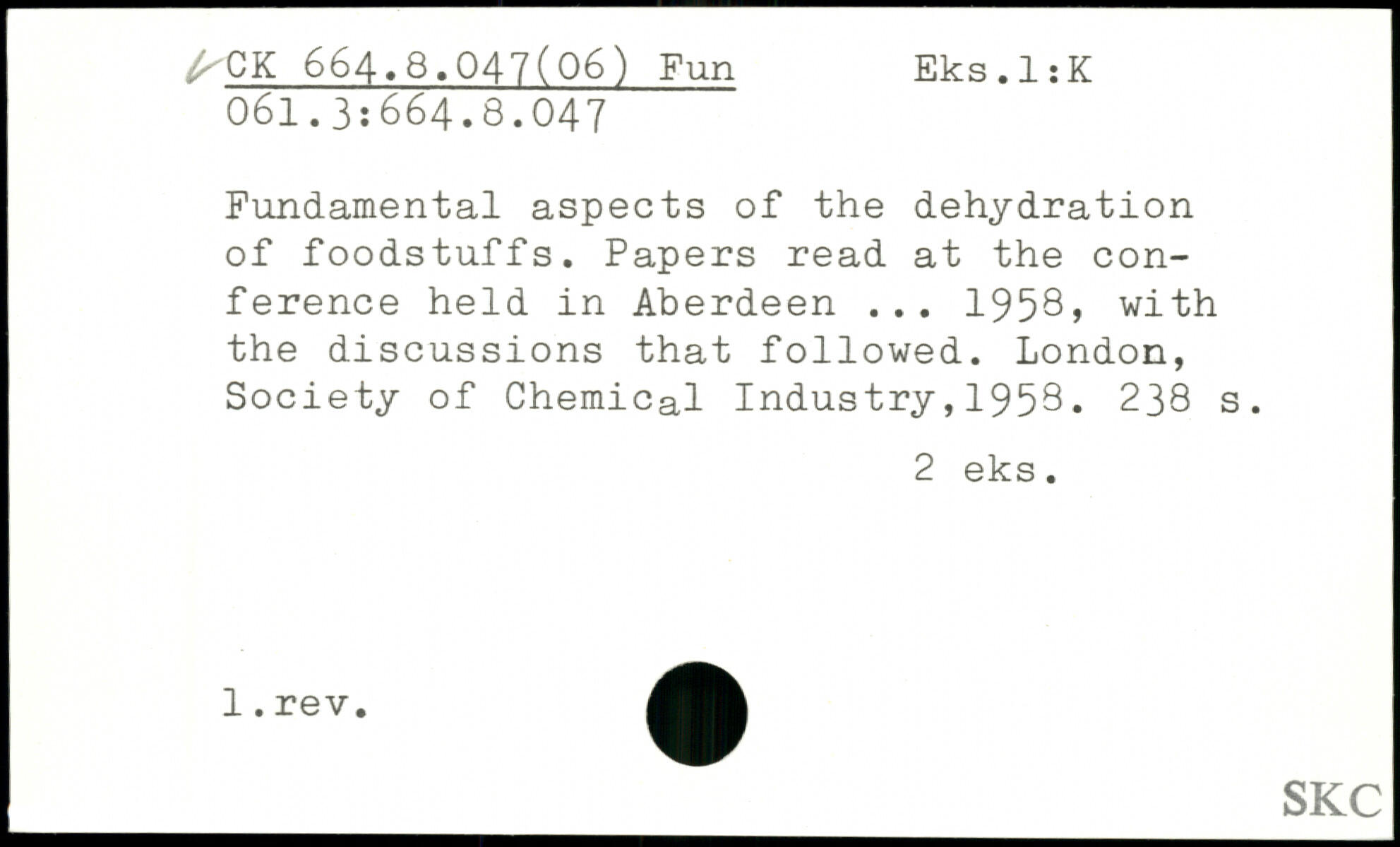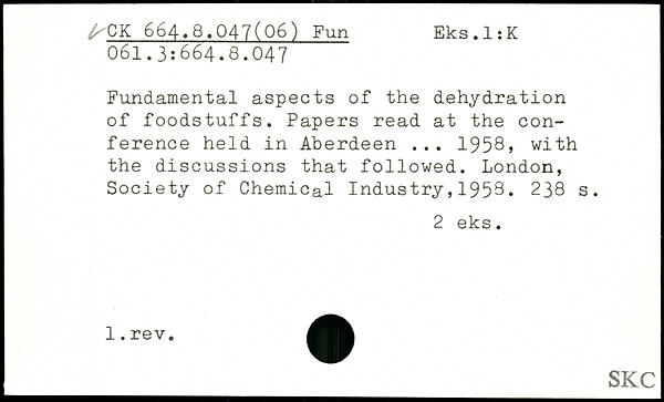 Fundamental aspects of the dehydration of foodstuffs. Papers read at the conference held in Aberdeen ... 1958, with the discussions that followed.