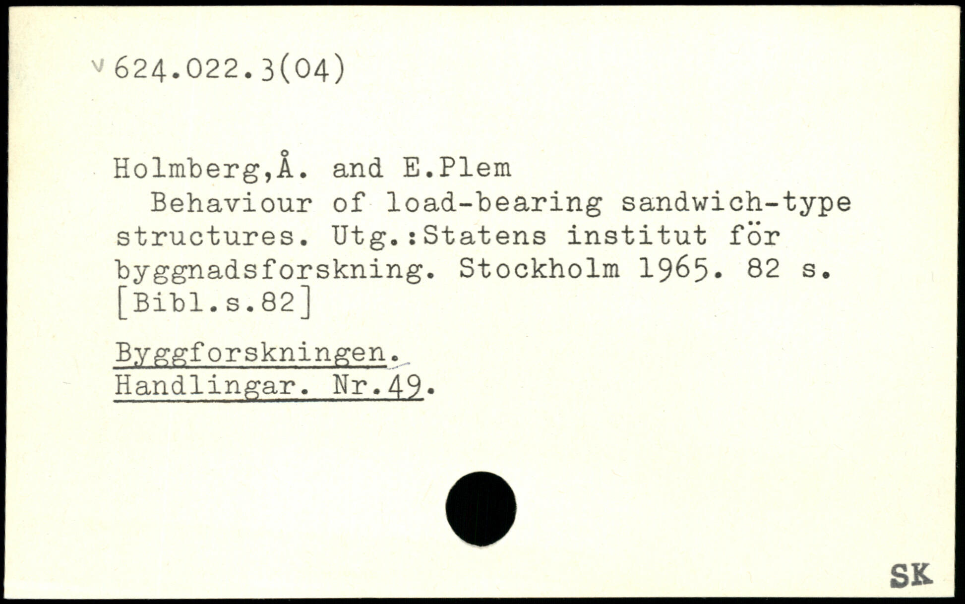 Behaviour of load-bearing sandwich-type structures. Utg.zStatens institut för byggnadsforskning.