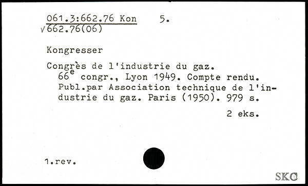 Congres de l'industrie du gaz. 66 congr., Lyon 19.+9. Compte rendu. j Publ.par Association technique de l'in- jj dustrie du gaz. Paris (1950).