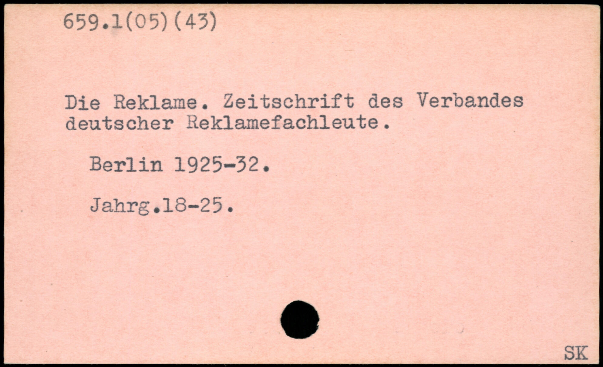 Die Reklame. Zeitschrift des Verbandes deutscher Reklamefachleute.