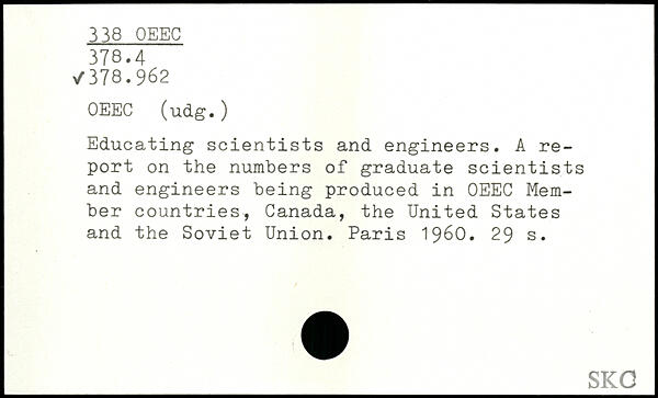 Educating scientists and engineers. A report on the numbers of graduate scientists and engineers being produced in OEEC Member countries, Canada, the United States and the Soviet Union.