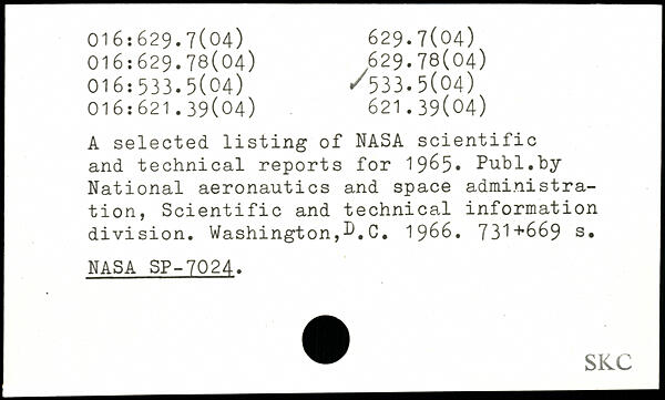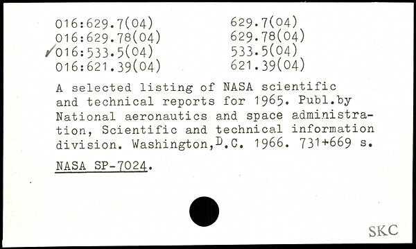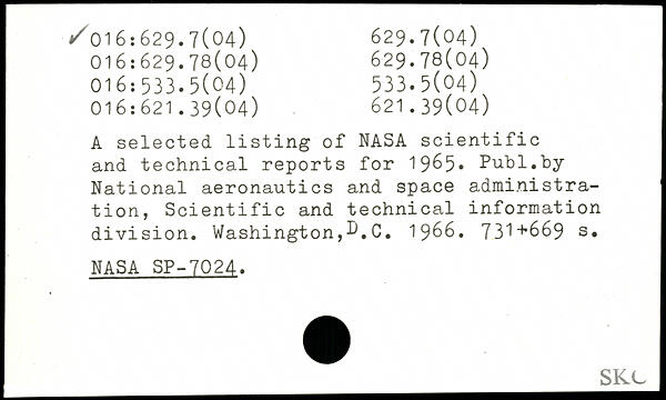 UDK: 016:629.7(04), 629.7(04), 016:629.78(04), 629.78(04), 016:533.5(04), 016:621.39(04), 621.39(04)