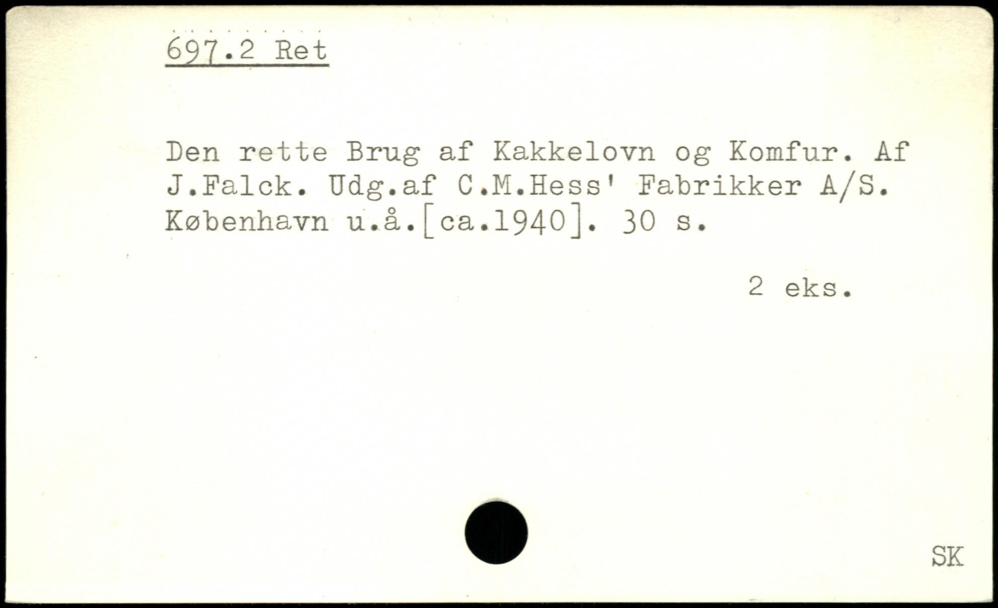 Den rette Brug af Kakkelovn og Komfur. Af J.Falck. Udg.af C.M.Hess' Fabrikker A/S. København u.å.[ca.1940].