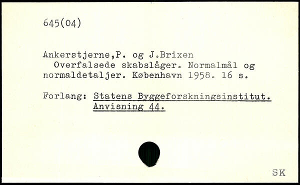 Overfalsede skabslåger,. Normalmål og normaldetaljer.
