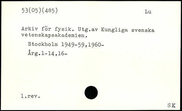 Arkiv for fysik. Utg.av Kungliga svenska vetenskapsakademien.