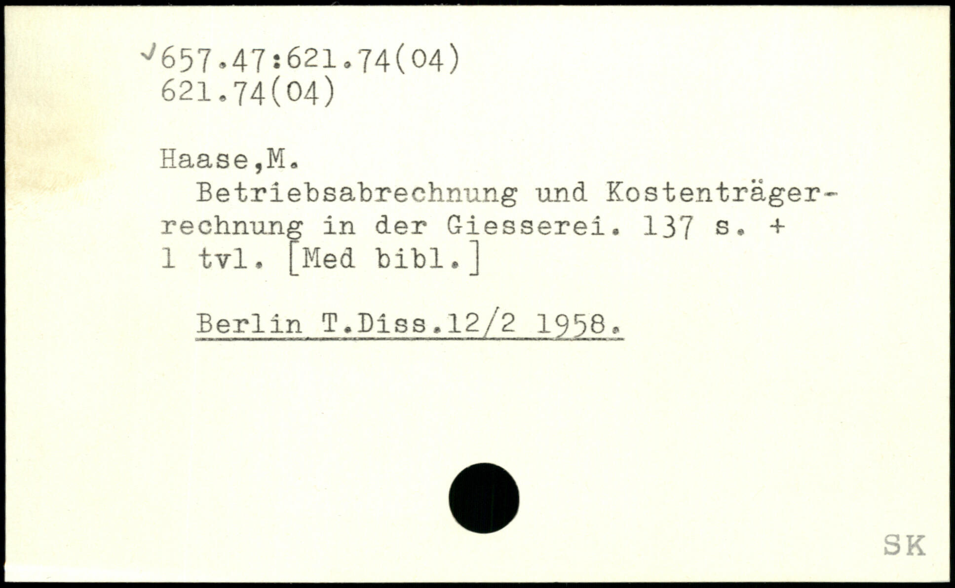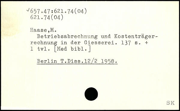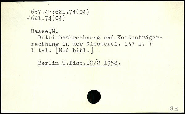 Betriebsabrechnung und Kostenträgerrechnung in der Giesserei.