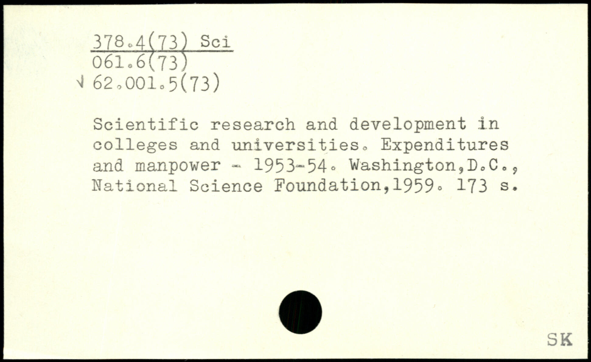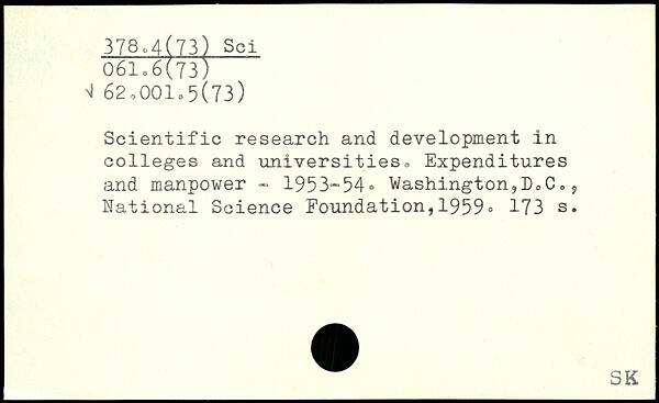 Scientific research and development in colleges and universities <, Expenditures and manpower. 1953-54. Washington,I)0