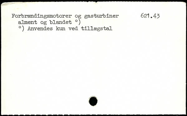 Forbrændingsmotorer og gasturbiner 621.43 alment og blandet .) .) Anvendes kun ved tillægstal