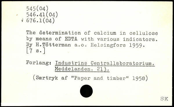 The determination of calcium in cellulose j by means of EDTA with various indicators. By H.Tötterman a.o.