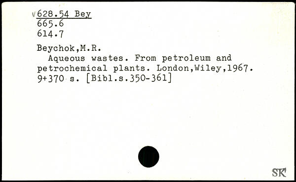 Aqueous wastes. From petroleum and petrochemical plants. London,Wiley,19^7.