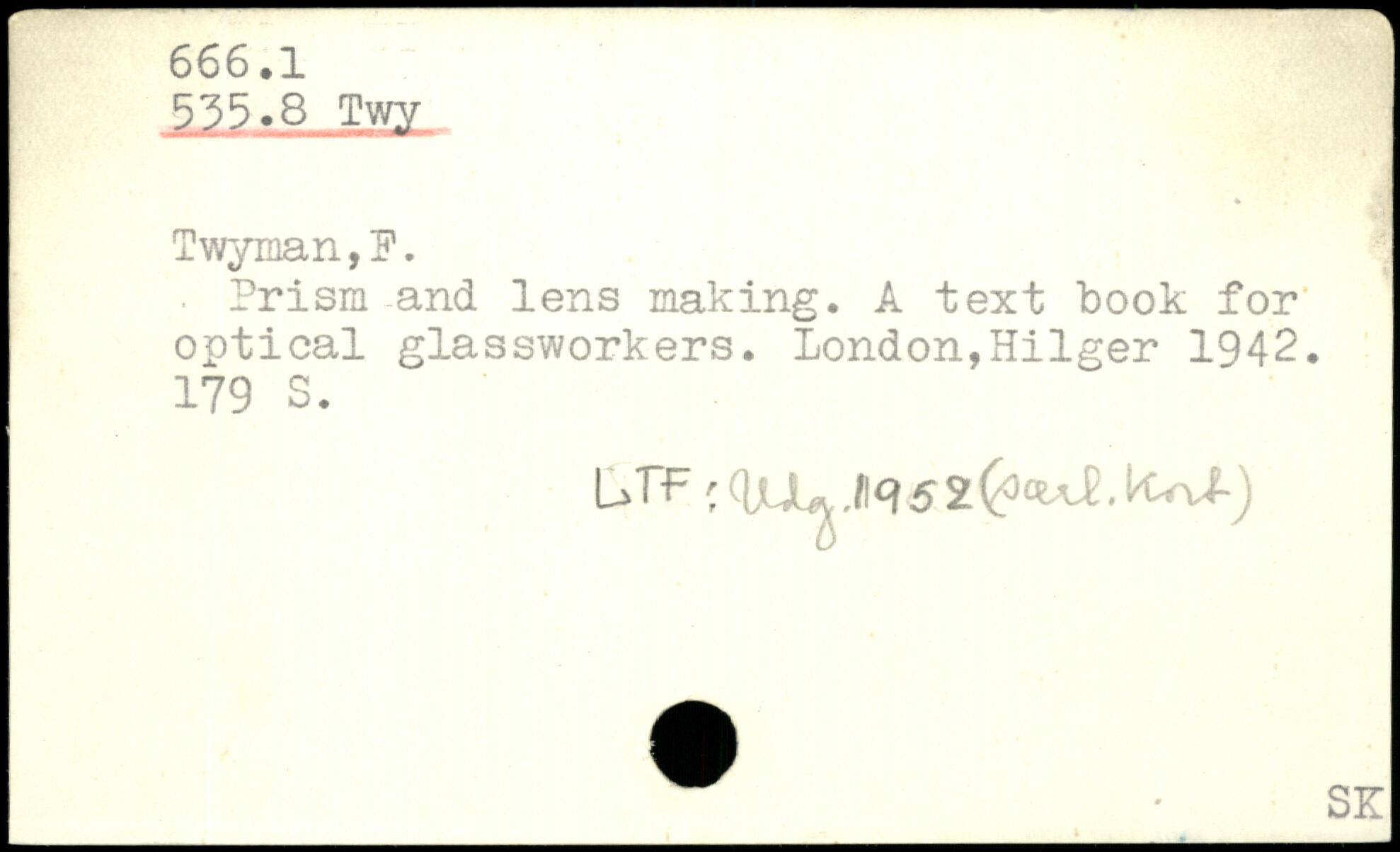 Prism and lens making. A text book for optical glassworkers. London,Hilger 1942.
