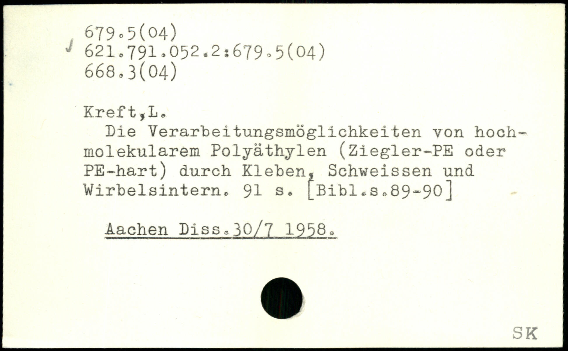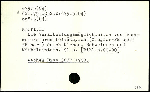 Die Verarbeitungsmöglichkeiten von hochmolekular em Polyäthylen (Ziegler-PE oder PE-hart) durch Kleben, Schweissen und Wirbelsintern.