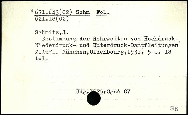 Schmitz,Je Bestimmung der Rohrweiten von Hochdruck-, Niederdruck— und Unterdruck-Bampfleitungen 2,Auflo München,Oldenbourg,193o.