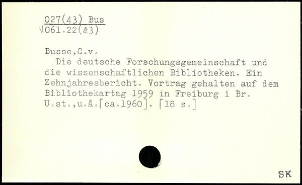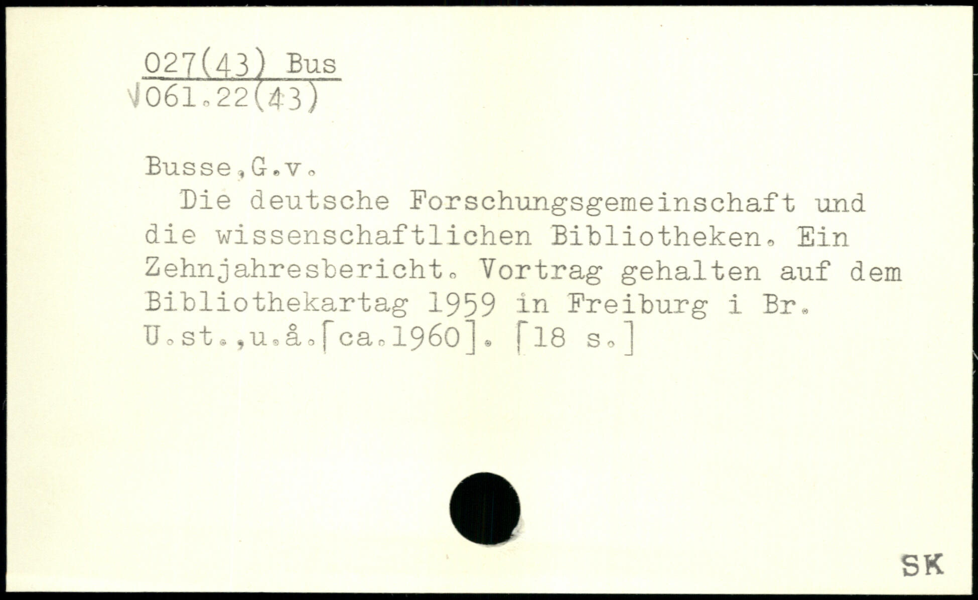Die deutsche Forschungsgemeinschaft und die wissenschaftlichen Bibliotheken, Ein Zehnjahresberichto Vortrag gehalten auf dem Bibliothekartag 1959 in Freiburg i Br. U,st..u,ä0fca,1960]. f