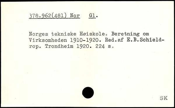 Norges tekniske Høiskole. Beretning om Virksomheden 1910-1920. Red.af E.B.Schield-rop.