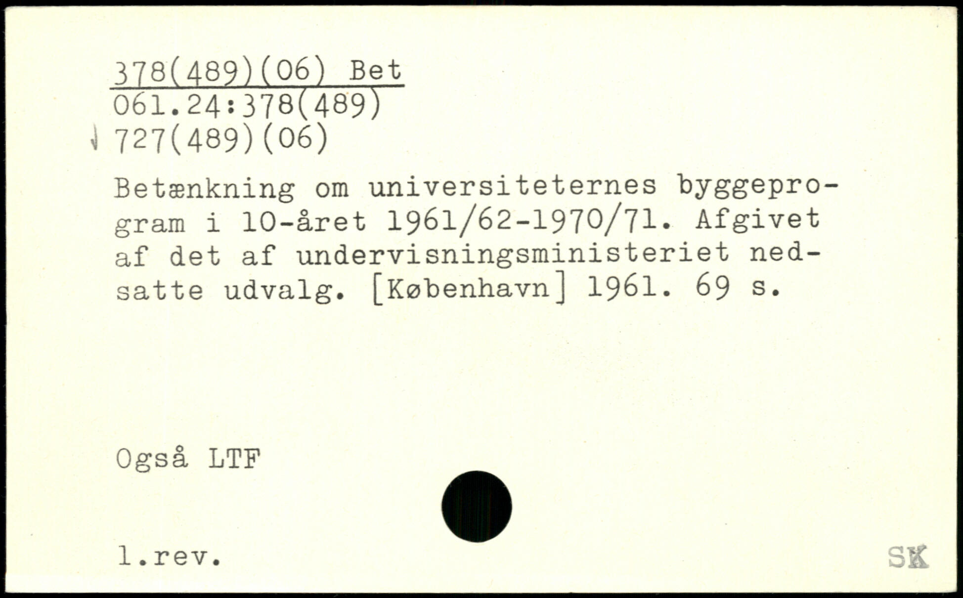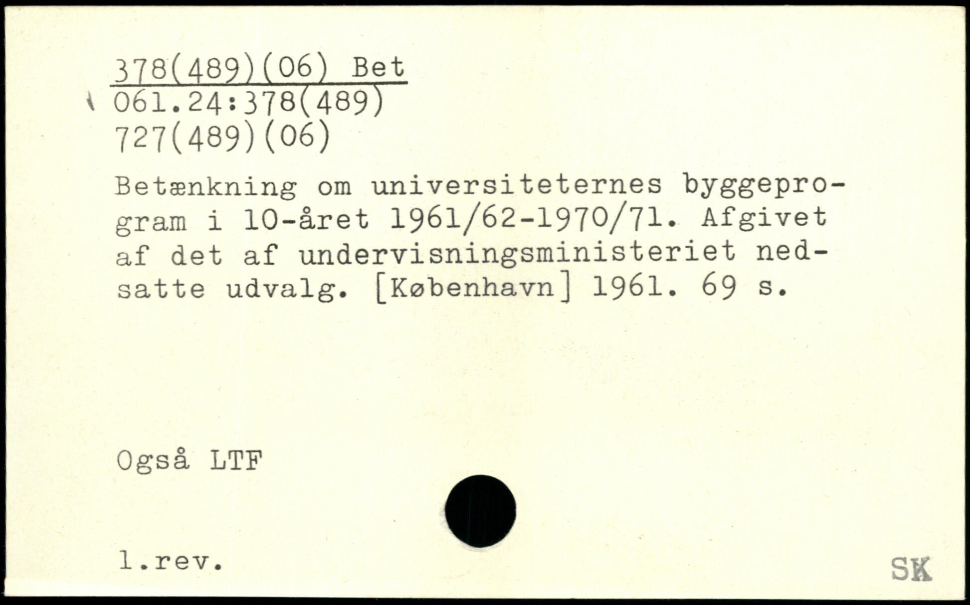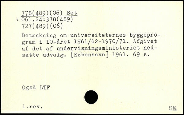 Betænkning om universiteternes byggeprogram i 10-året 1961/62-1970/71. Afgivet af det af undervisningsministeriet nedsatte udvalg.