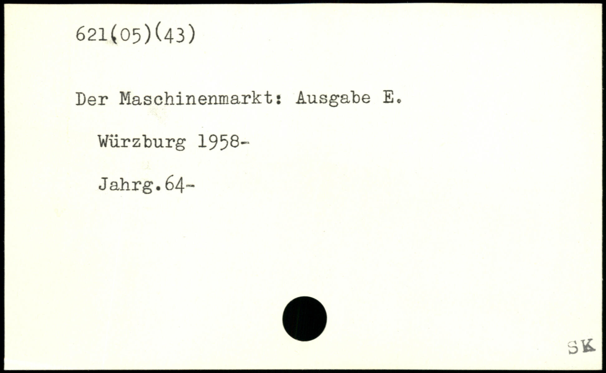 Der Maschinemnarkt : Ausgabe E. Würzburg 1958-Jahrg.64-