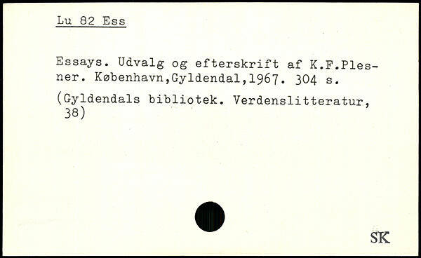 Essays. Udvalg og efterskrift af K.F.Piesner.
