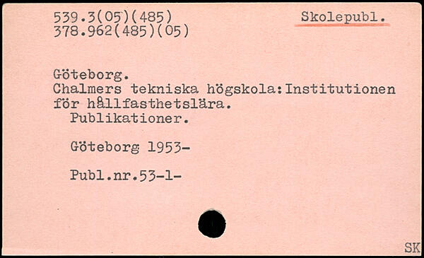 Chalmers tekniska högskola:Institutionen för hållfasthetslära. Publikationer. G-öteborg 1953- Publ.nr.53-1-