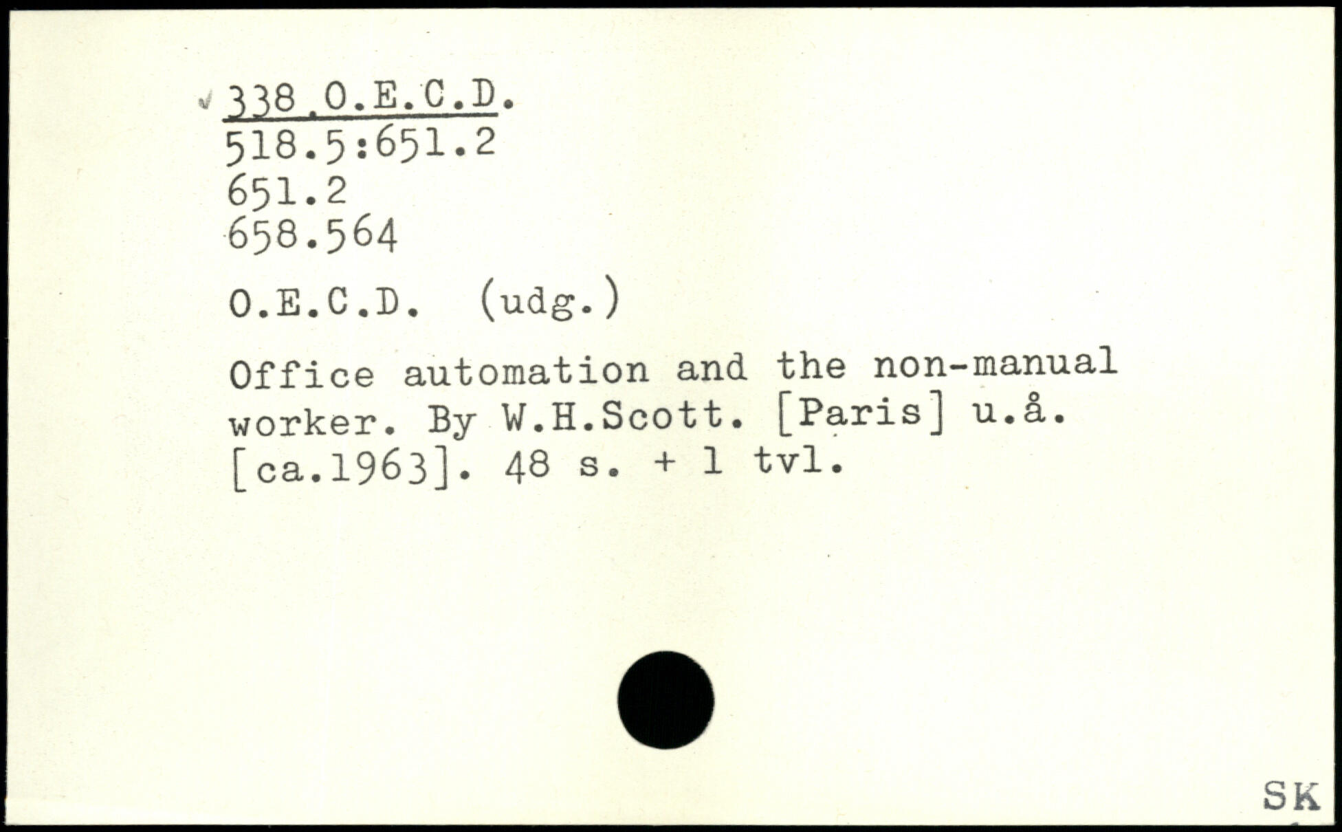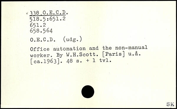 Office automation and the non-manual worker. By V.H.Scott. [Paris] u.&.