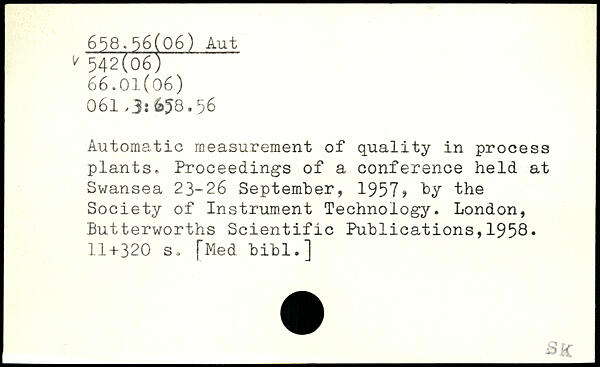 Automatic measurement of quality in process plants. Proceedings of a conference held at Swansea 23-