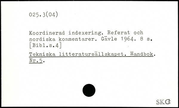 Koordinerad indexering. Referat och nordiska kommentarer. Gävle 1964.