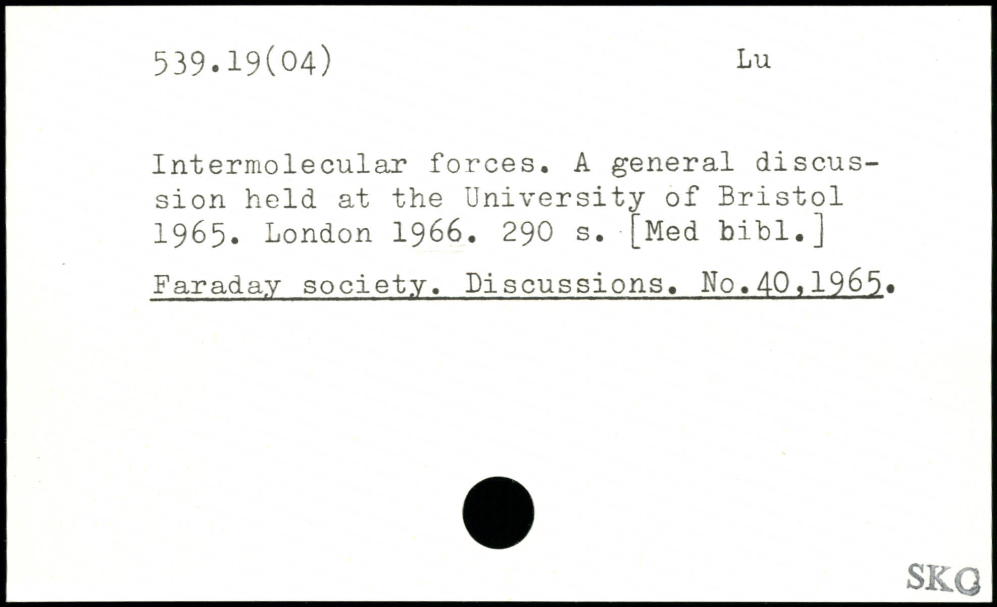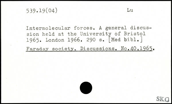 Intermolecular forces. A general discussion held at the University of Bristol 1965.
