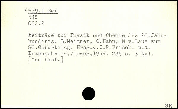 Beiträge zur Physik und Chemie des 20.Jahrhunderts, L.Meitner, O.Hahn, M^VoLaue zum 80.Geburtstag. HrsgcV.OcR-,Frisch, u.a