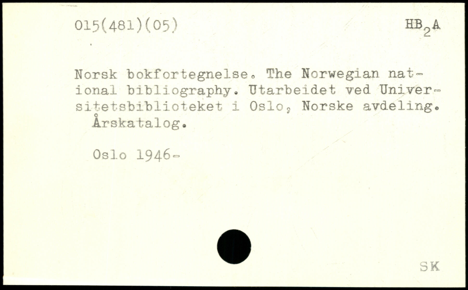 Norsk bokf ort-egnelse 0 The Norwegian national bibliography. Utarbeidet ved Universitetsbiblioteket i Osloj Norske avdeling. Arskatalog. Oslo 1948”