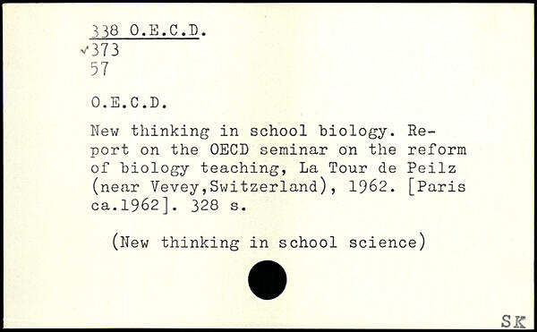 New thinking in school "biology. Report on the OECD seminar on the reform of biology teaching, La Tour de Peilz (near Vevey,Switzerland), 1962.
