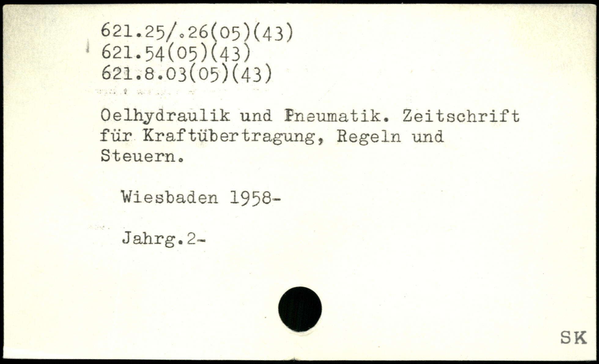Oelhydraulik und Pneumatik. Zeitschrift für Kraftübertragung, Regeln und Steuern. Wiesbaden 1958- Jahrg.2-