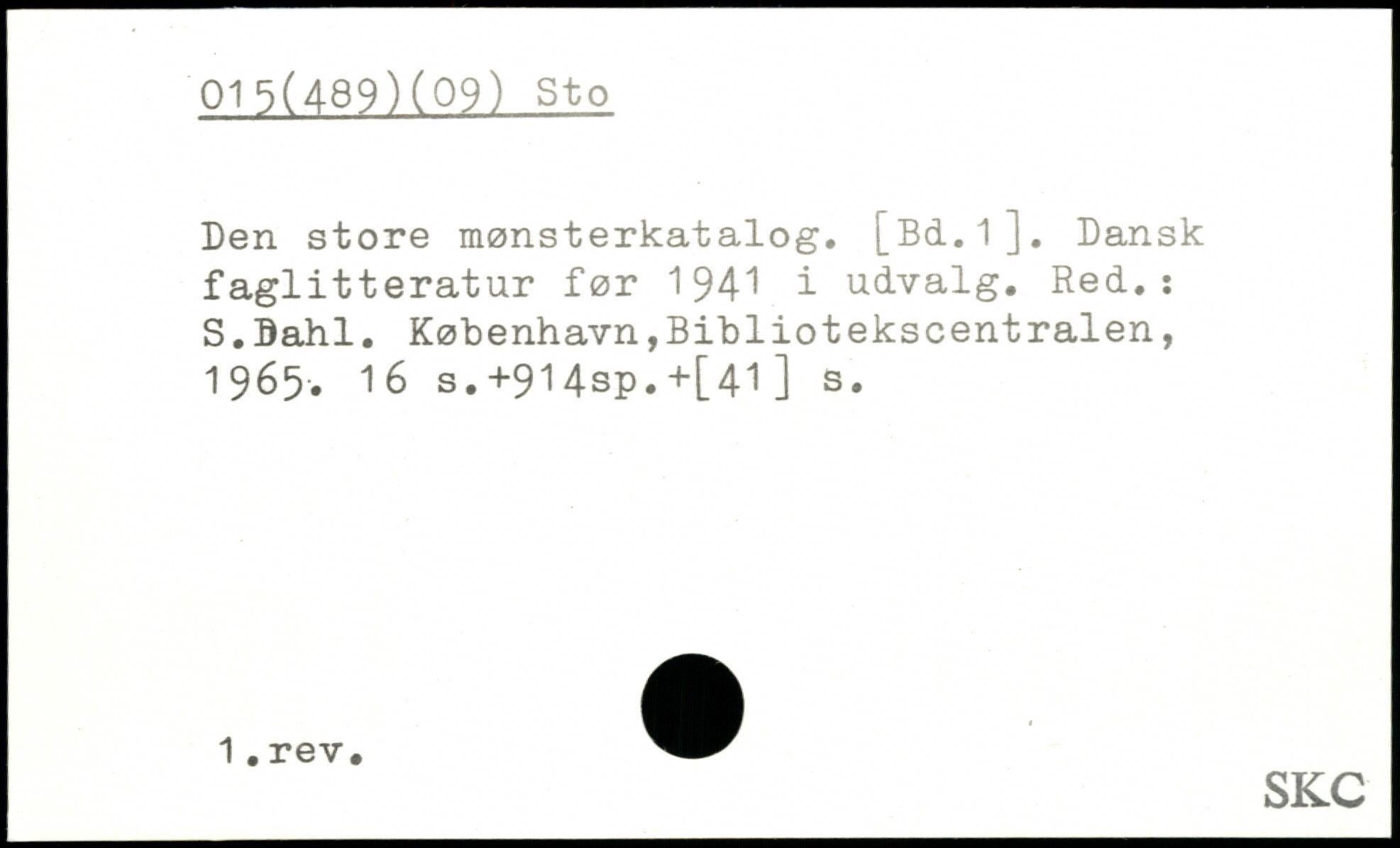 Den store mønsterkatalog. [Bd.l], Dansk faglitteratur før 1941 i udvalg. Red.: S.Dahl.