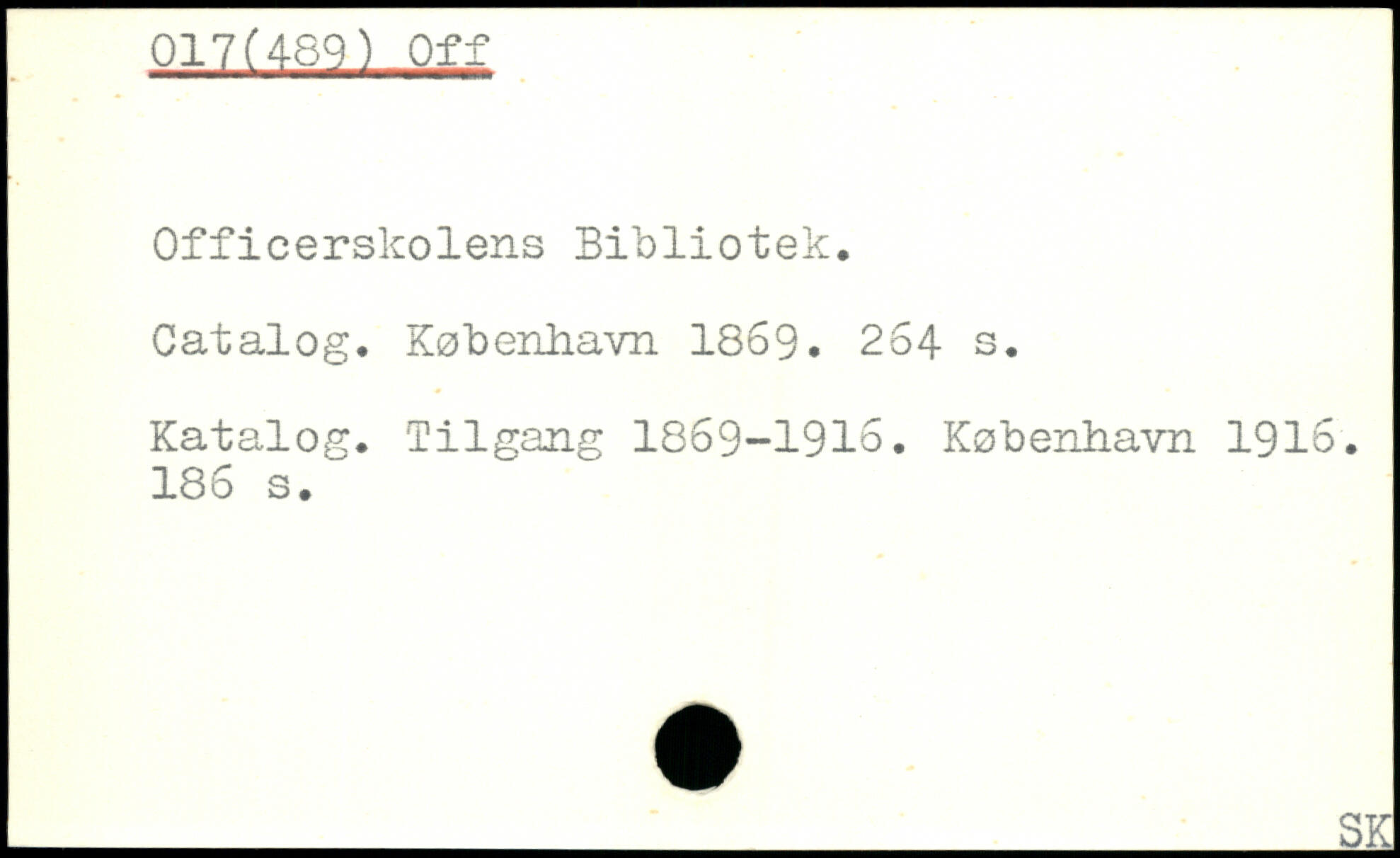 Officerskolens Bibliotek. Catalog.