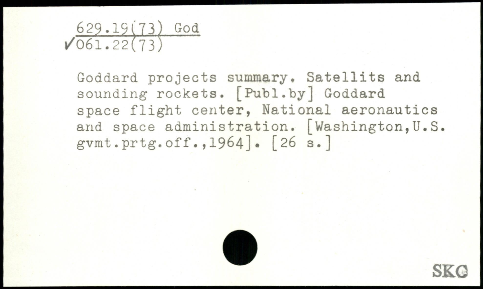 Goddard projects summary. Satellite and sounding rockets.