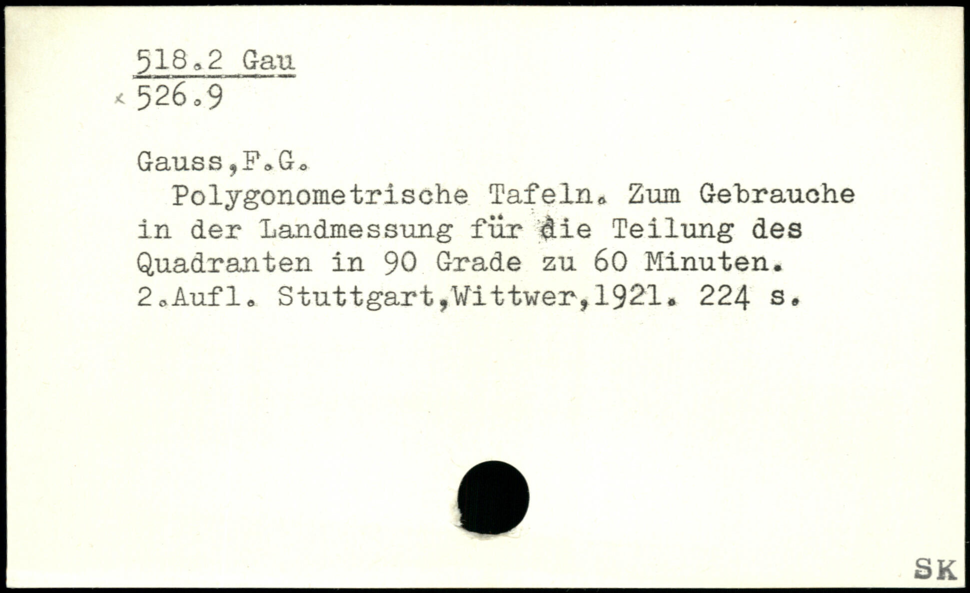 Polygonometrische Tafeln, Zum Gebrauche in der Landmessung für <Jie Teilung des Quadranten in 90 Grade zu 60 Minuten.