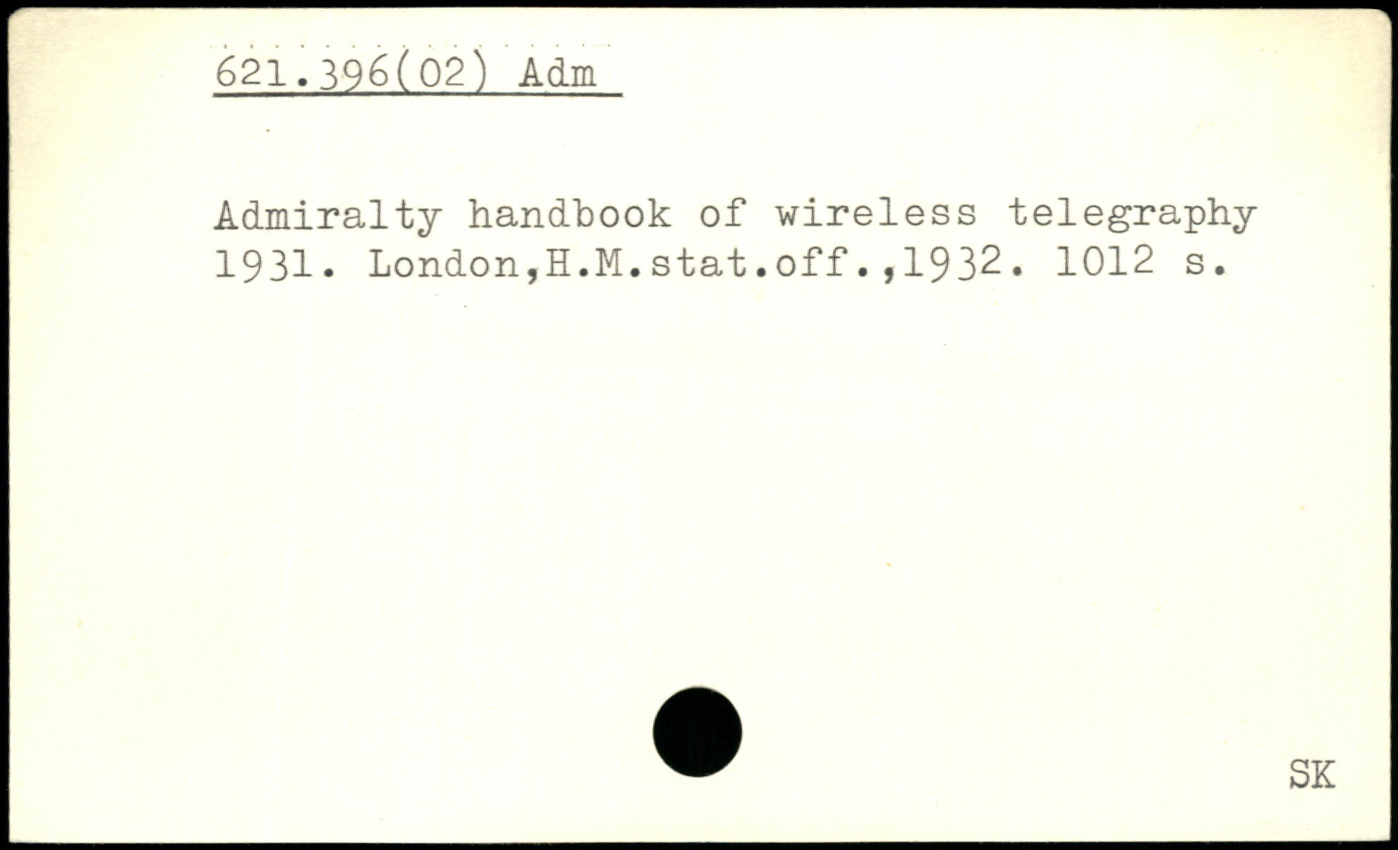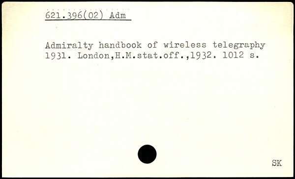 Admiralty handbook of wireless telegraphy 1931, London,H.M.stat.off.,1932.