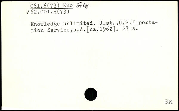Knowledge unlimited. U.st.,U.S.Importation Service,u.å.[ca.1962].