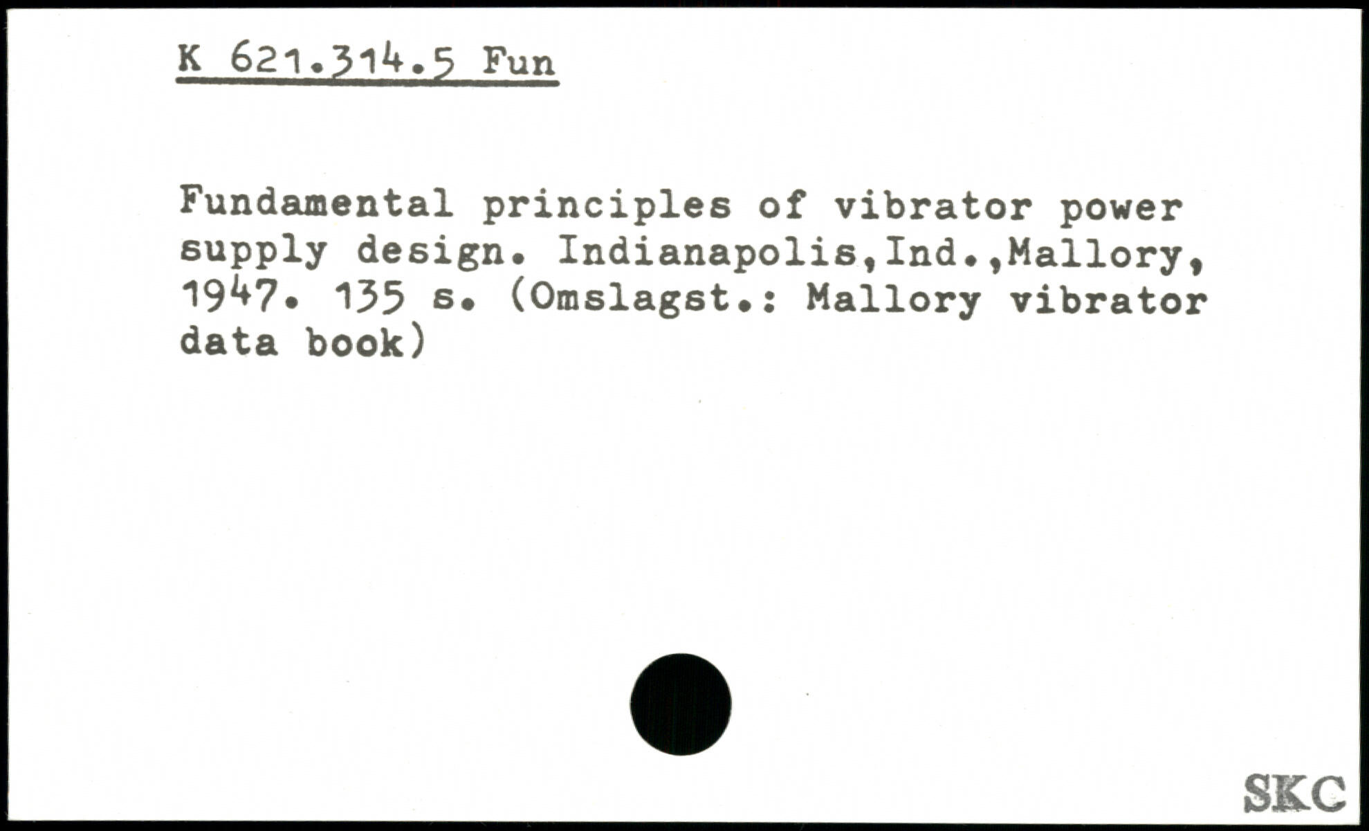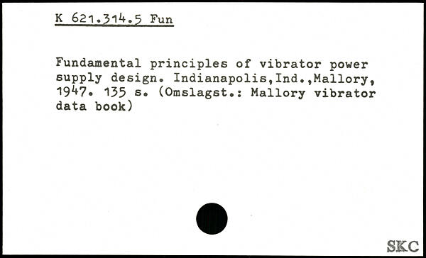 Fundamental principles of vibrator power supply design. Indianapolis,Ind.,Mallory, 19^7.
