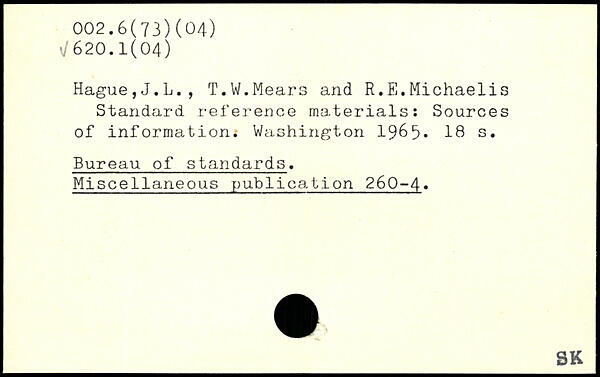 Hague,J.L., T.W.Mears and R.E.Michaelis Standard reference materials: Sources of information.