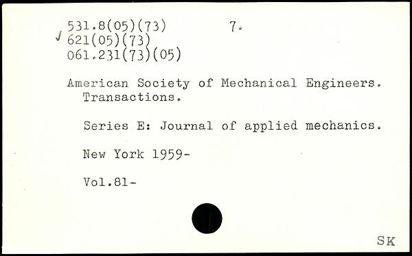 American Society of Mechanical Engineers, Transactions. Series E: Journal of applied mechanics.