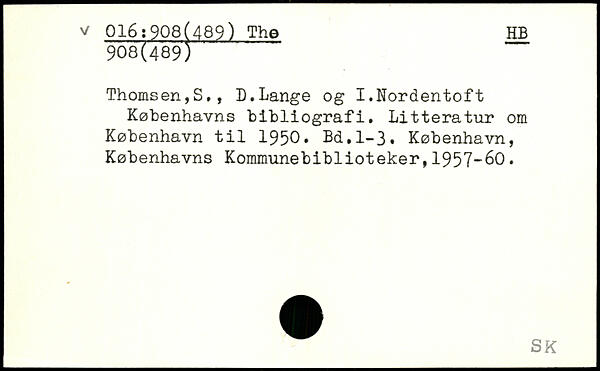 Thomsen,S,, D.Lange og I.Nordentoft Københavns bibliografi. Litteratur om København til 1950.