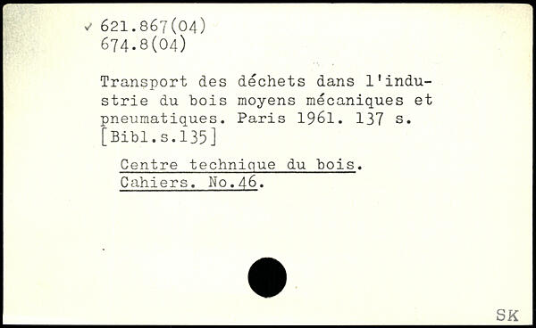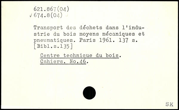 Transport des déchets dans l’industrie du bois moyens mécaniques et pneumatiques.
