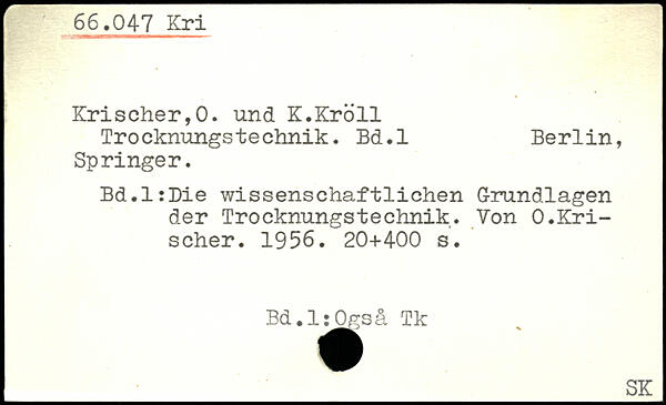 Trocknungstechnik. Bd.l Berlin, Springer. Bd.ltBie wissenschaftlichen Grundlagen der Trocknungstechnik. Von O.Kri-scher. 1956.