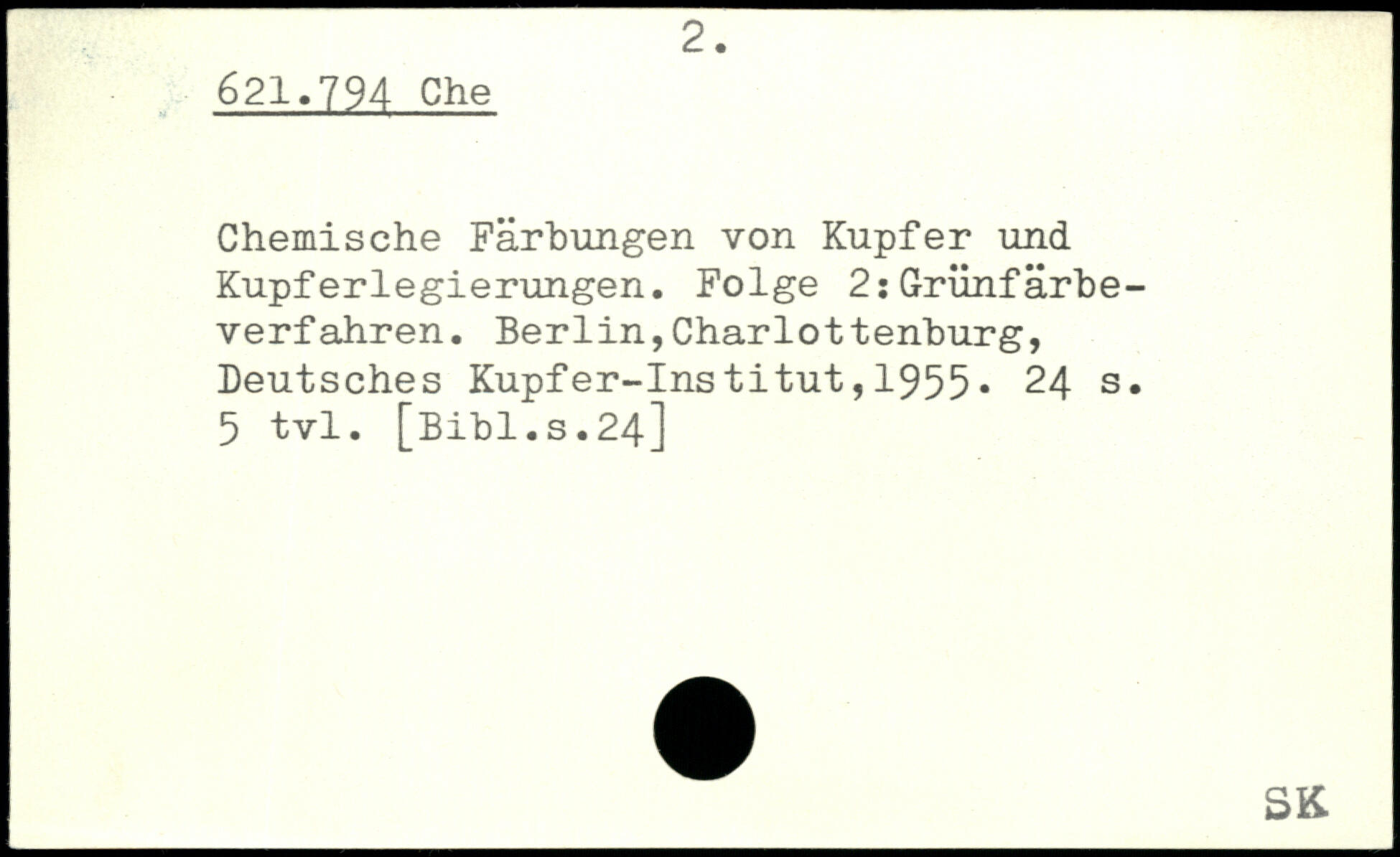 Chemische Färbungen von Kupfer und Kupferlegierungen. Folge 2:Grünfärbe-verfähren.