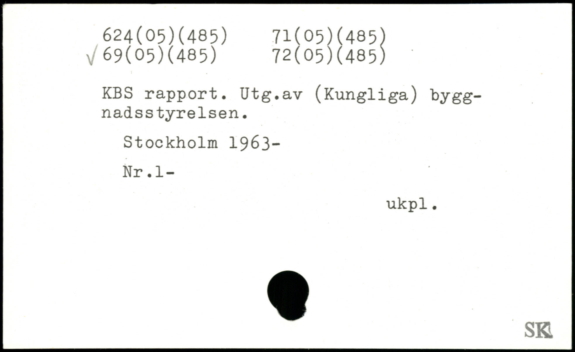 KBS rapport. Utg.av (Kungliga) bygg-nadsstyreIsen.