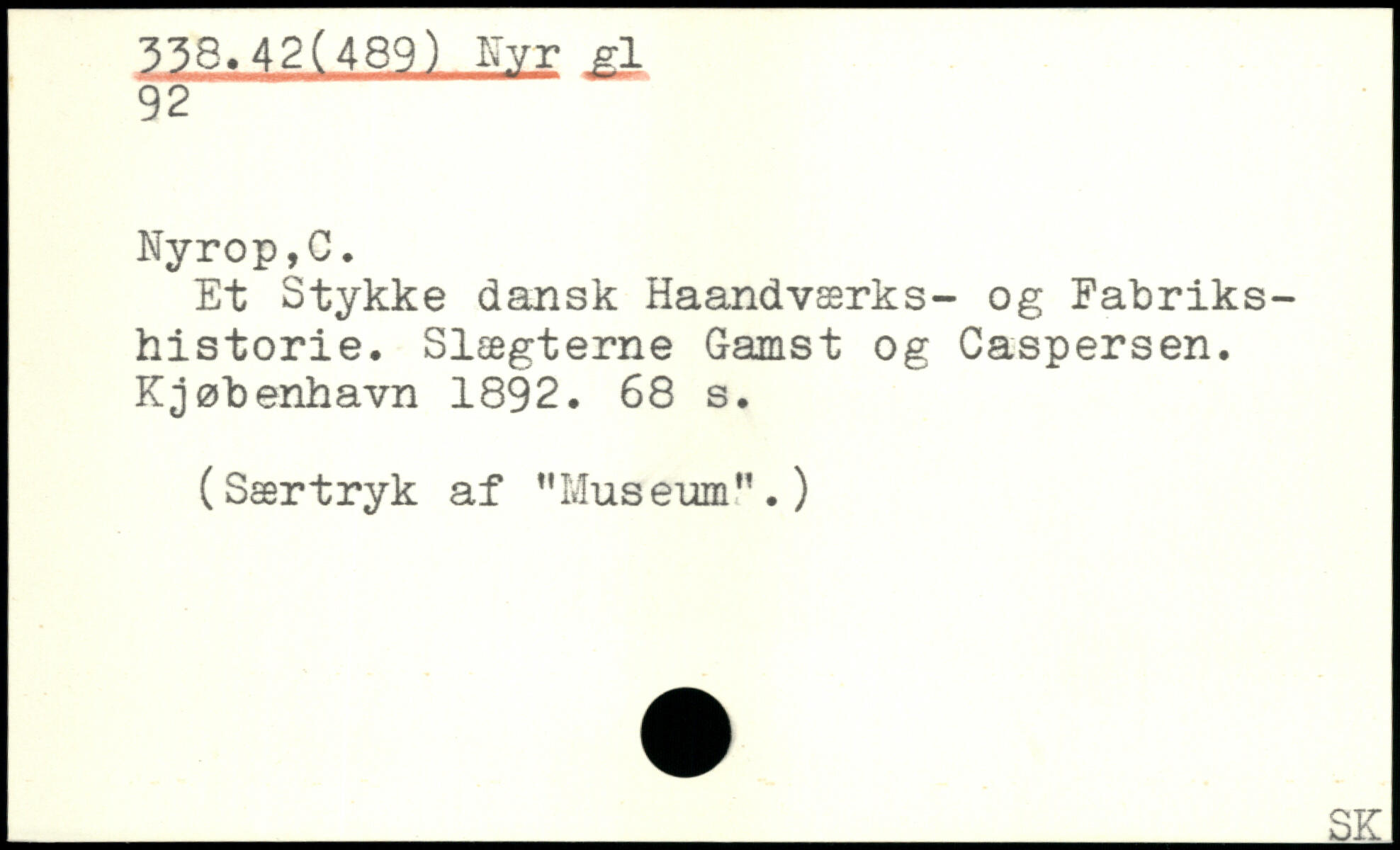 Et Stykke dansk Haandværks- og Fabrikshistorie. Slægterne Gamst og Caspersen. Kjøbenhavn 1892.
