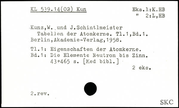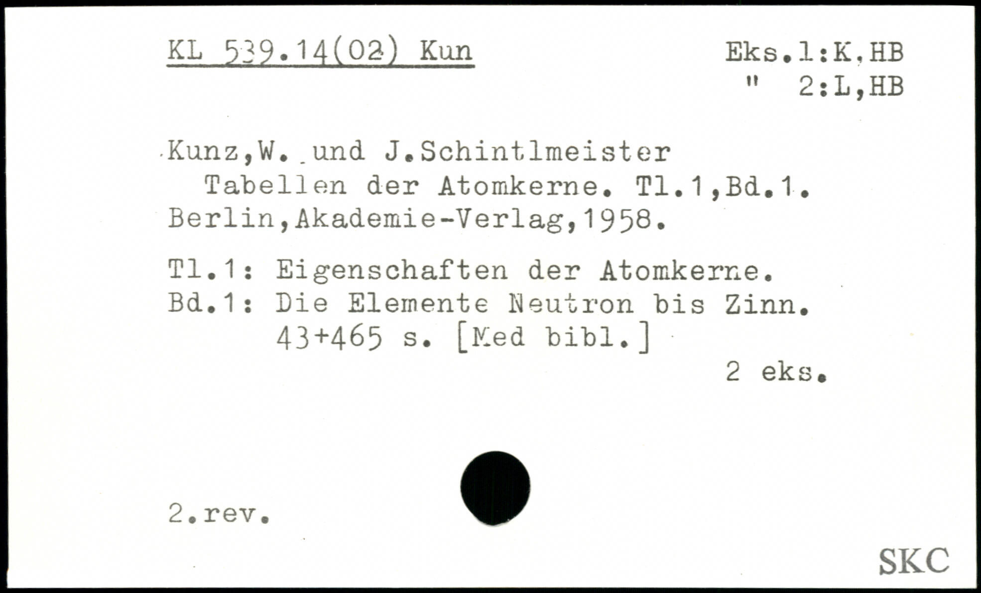 .Kunz,W..und J.Schintlmeister Tabellen der Atomkerne. Tl.1